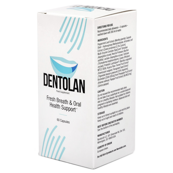 A Dentolan egy többkomponensű étrend-kiegészítő azoknak, akik a rossz lehelettel küzdenek. Egyedülálló összetétele belülről fejti ki hatását, eltávolítja a probléma forrását, valamint biztosítja az emésztési komfortot és a gyomornedv megfelelő pH-ját.